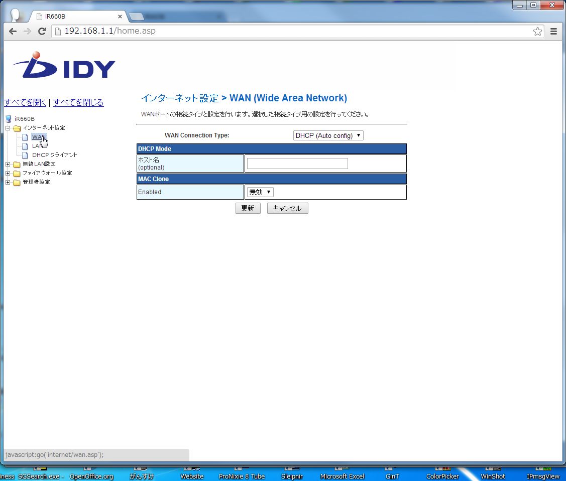 - PCのブラウザから下記のアドレスにアクセスします。(http://192.168.1.1)